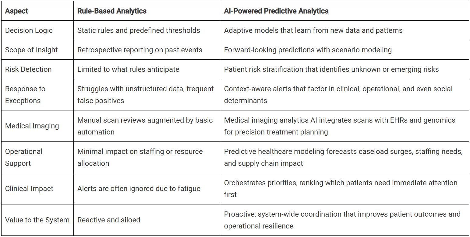AI in Healthcare Analytics: Rule-Based Analytics Vs. Predictive Intelligence